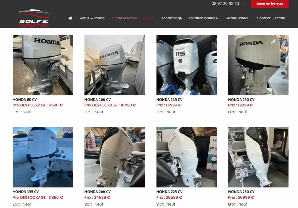 Golfe Nautic, distributeur de bateaux près de Vannes dans le Golfe du Morbihan (56). Le spécialiste du semi rigide en Bretagne et magasin d’accastillage vous accueille à Saint Gildas de Rhuys près du Port du Crouesty sur la Presqu’île de Rhuys. Golfe Nautic propose bateaux à vendre neufs et d’occasion, un dépôt vente, des moteurs et remorques pour bateau mais aussi un service d’hivernage, de gardiennage de bateaux. Le chantier naval assure l’entretien mécanique et la réparation. Vous trouverez un service de location de bateaux au départ de Larmor Baden ou du Port du Logeo.
